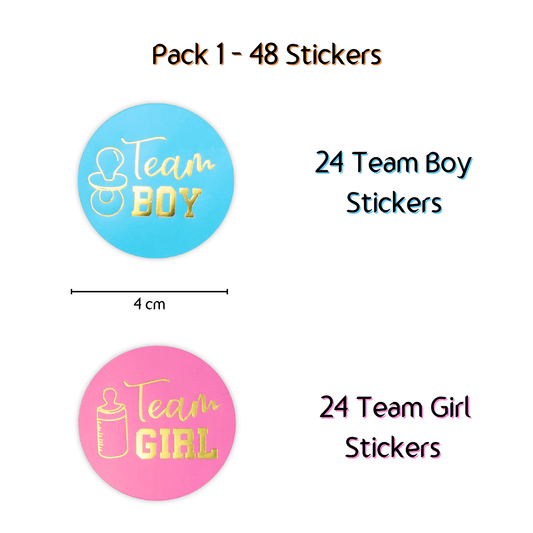 48Pcs Team Boy/Team Girl Gender Reveal Sticker Set