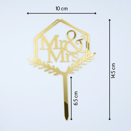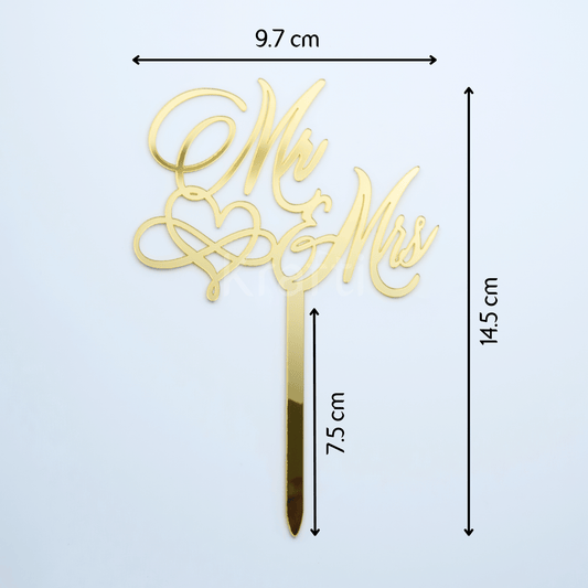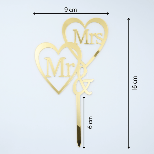 We offer a wide selection of elegant and stylish cake toppers to complement your wedding theme and express your unique love story. Whether you're looking for classic designs like Mr. and Mrs. cake toppers or modern options like acrylic wedding cake charms, you'll find the perfect topper to make your cake stand out.